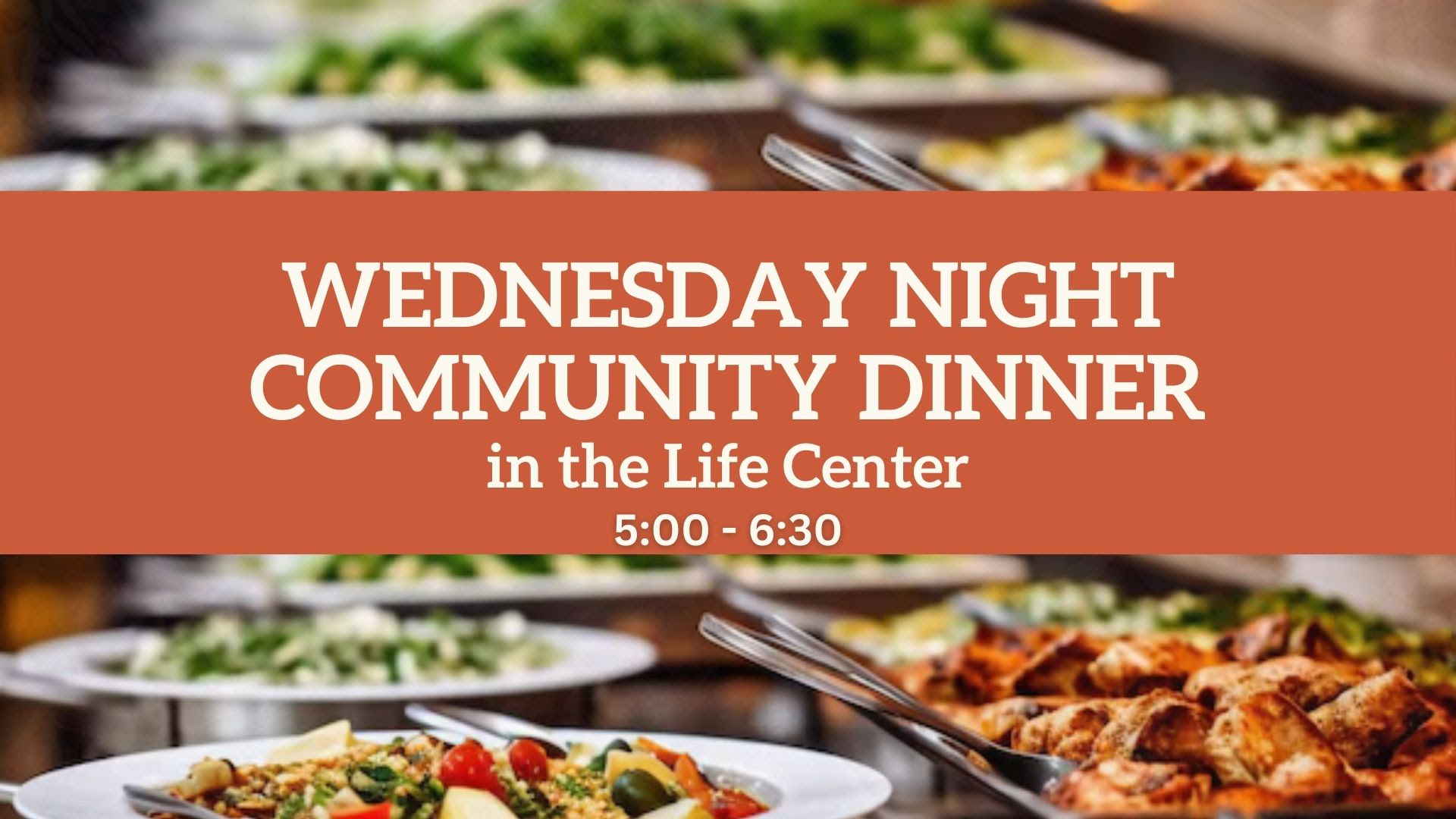 Our Wednesday Night Community Dinner will be back after the summer break! We look forward to gathering again for food, fellowship, and community.